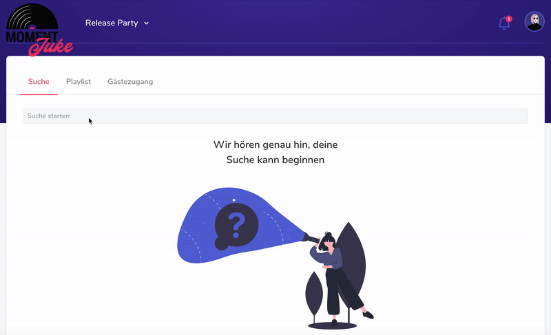 Mit unserem selbstentwickelten Playlist-Manager Jukie, habt ihr die Möglichkeit eure Playlist zusammen mit euren Gästen zu gestalten. Bei der Songauswahl, könnt ihr auf die gesamte Spotify Musikdatenbank zurückgreifen. Eure Freunde und Gäste, könnt ihr kinderleicht über einen Link einladen. Das Besondere daran ist, eure Gäste brauchen selbst keinen Spotify Account. So kann wirklich jeder dabei helfen, die perfekte Playlist zu gestalten.